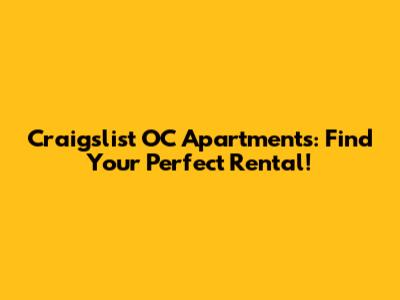 Craigslist OC Apartments: Find Your Perfect Rental!
