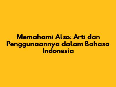 "Also" adalah kata keterangan (adverb) dalam bahasa Inggris yang memiliki beberapa arti, namun yang paling umum adalah "juga" atau "juga lagi" dalam bahasa Indonesia. Kata ini digunakan untuk menambahkan informasi, ide, atau pernyataan lain yang serupa dengan apa yang telah disebutkan sebelumnya. Gampangnya, "also" menunjukkan adanya tambahan atau pelengkap terhadap sesuatu.