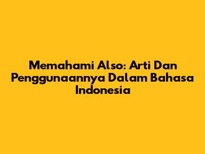 Memahami 'Also': Arti Dan Penggunaannya Dalam Bahasa Indonesia