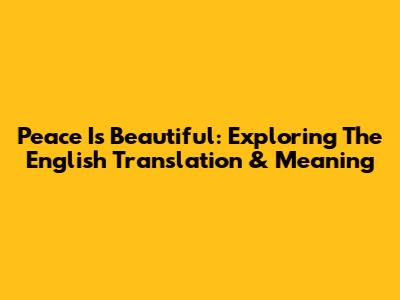 Peace Is Beautiful: Exploring The English Translation & Meaning